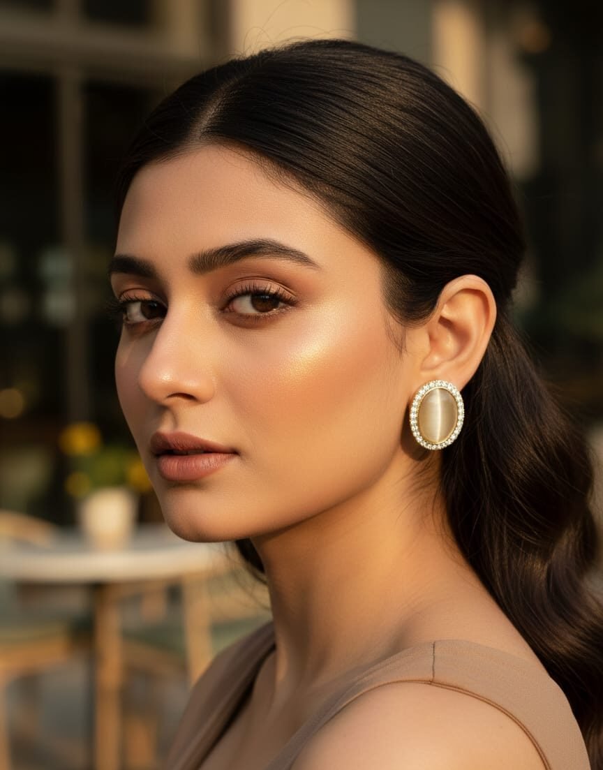 Lightweight and comfortable, these stud earrings are ideal for daily wear as well as special occasions such as parties, weddings, dinners, and festive events. Their refined design effortlessly elevates your look, whether paired with casual wear or formal attire.
