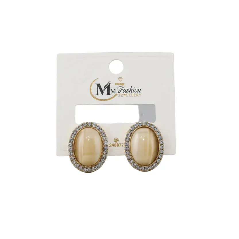 Add timeless elegance to your jewelry collection with these Elegant Oval Stone Stud Earrings. Designed with a smooth oval centerpiece in a soft neutral tone, these earrings are beautifully framed by a sparkling crystal border that enhances their luxurious appeal. The warm gold finish adds a classic touch, making them perfect for both traditional and modern outfits.