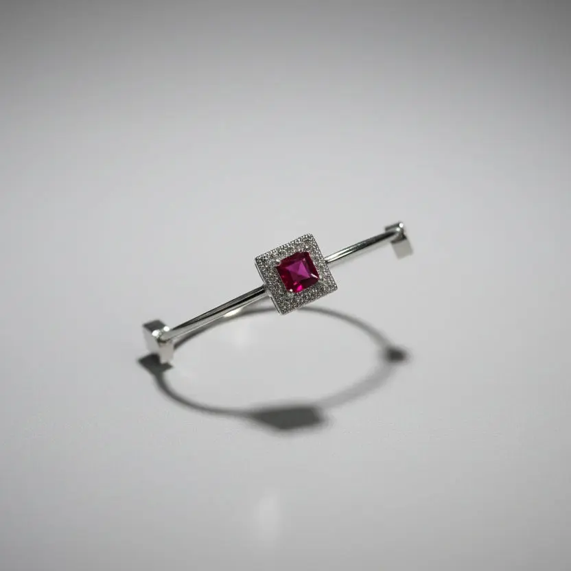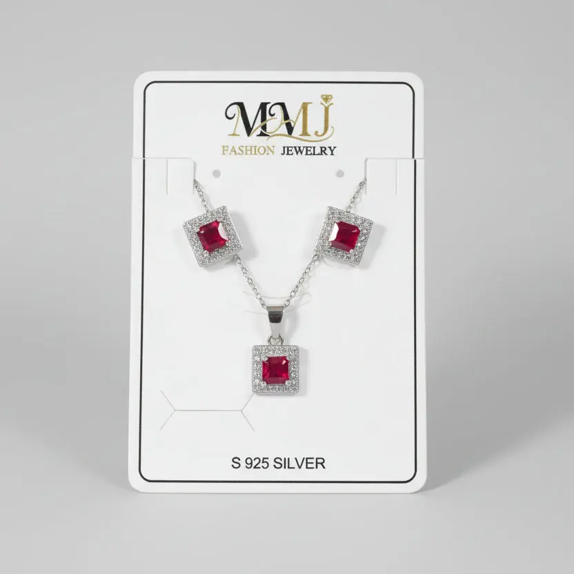 Enhance your elegance with this Square Ruby-Style Jewelry Set, a timeless combination of sophistication and modern charm. This beautifully coordinated set includes a square pendant necklace, matching stud earrings, and a delicate bracelet, all finished in a polished silver tone.