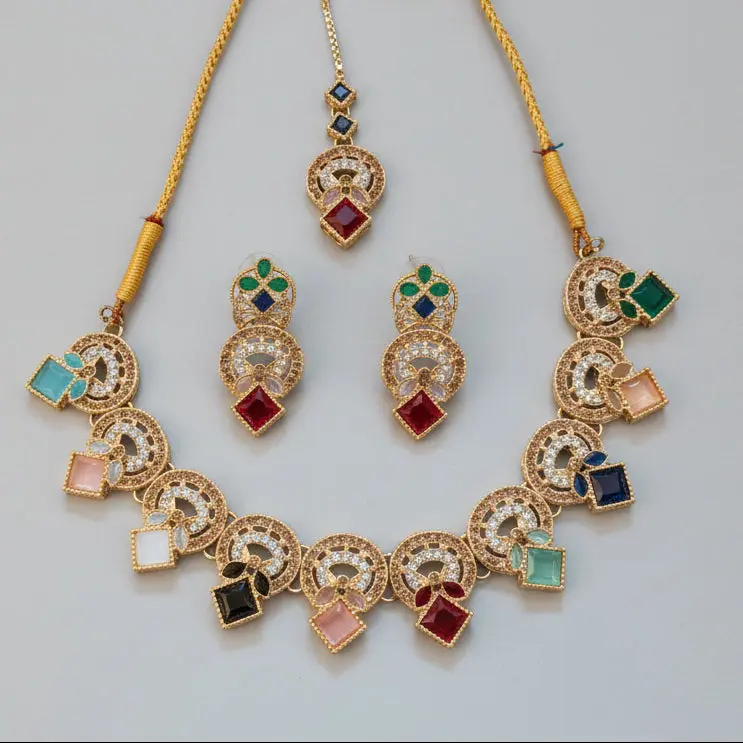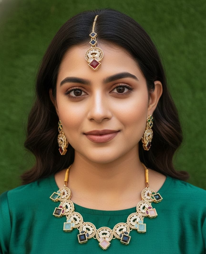 Elevate your ethnic wardrobe with this stunning Multi-Color Traditional Jewelry Set. Designed for the modern woman who loves a touch of heritage, this set features a beautifully crafted choker necklace, a pair of matching drop earrings, and an elegant maang tikka.