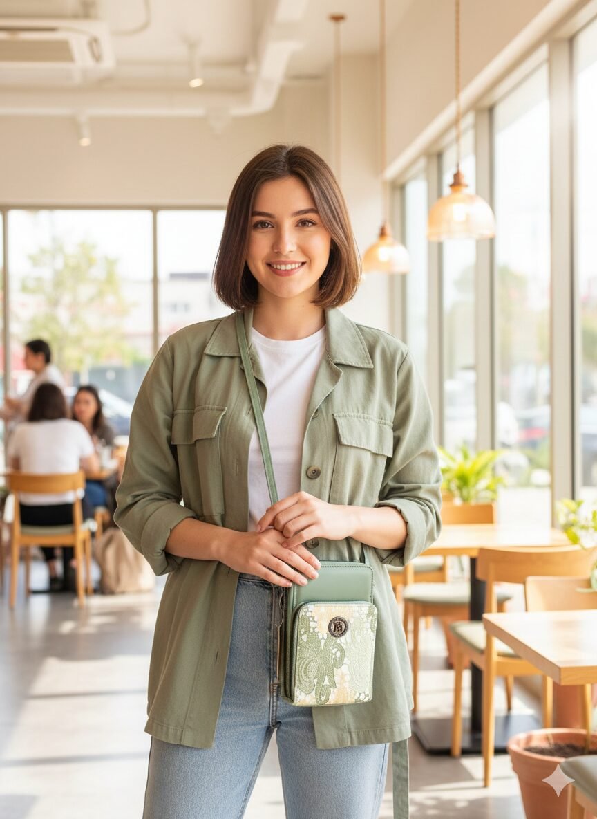 Functionality: Includes a dedicated front pocket for easy smartphone access and a larger zippered compartment for cards, cash, and keys.
