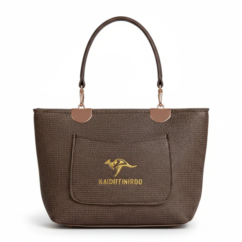 Combining classic utility with a luxury feel, this KAIDIFEINIROO tote is designed for the modern woman on the go. Crafted from high-quality cross-hatch textured vegan leather, this bag offers both durability and a refined aesthetic in a rich tan-brown hue.
