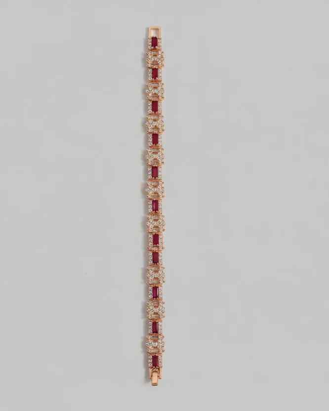 Luxury Gold-Tone Tennis Bracelet – Ruby Red & Clear Crystal Links