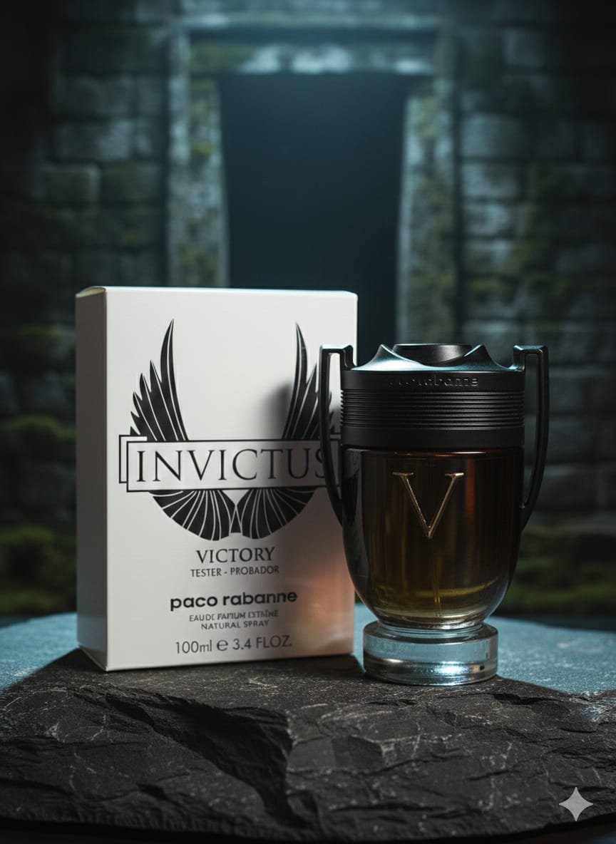 Reach the pinnacle of achievement with Invictus Victory by Paco Rabanne. This extreme Eau de Parfum is an intense duel between freshness and sensuality, housed in the iconic trophy-shaped bottle, now finished in a powerful matte black with a golden “V” for victory.