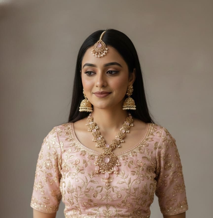 Royal Rose Quartz Long Mala Set – Premium Wedding Collection with Pearl Tassels Original price was: ₨ 5,907.₨ 4,500Current price is: ₨ 4,500.