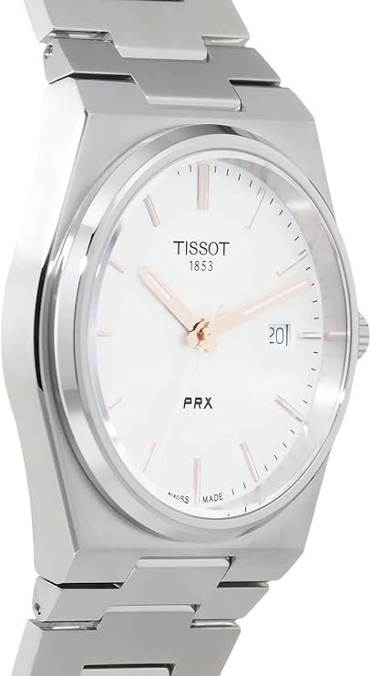 Tissot PRX Swiss Made Men’s Watch – 40mm Stainless Steel Integrated Bracelet with Silver Dial & Rose Gold Accents